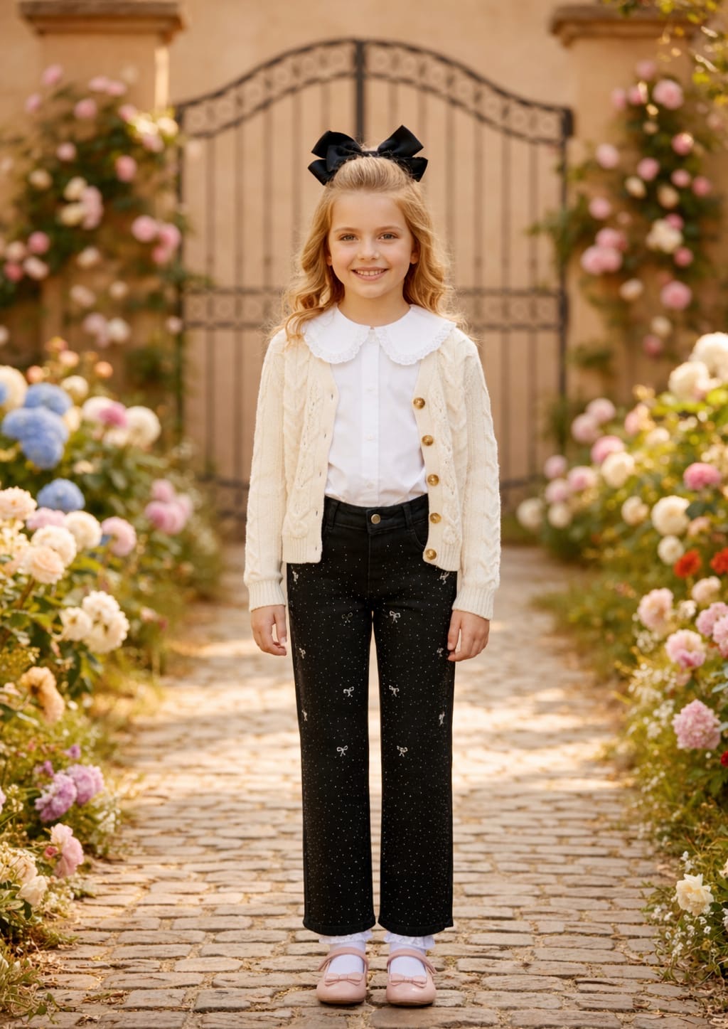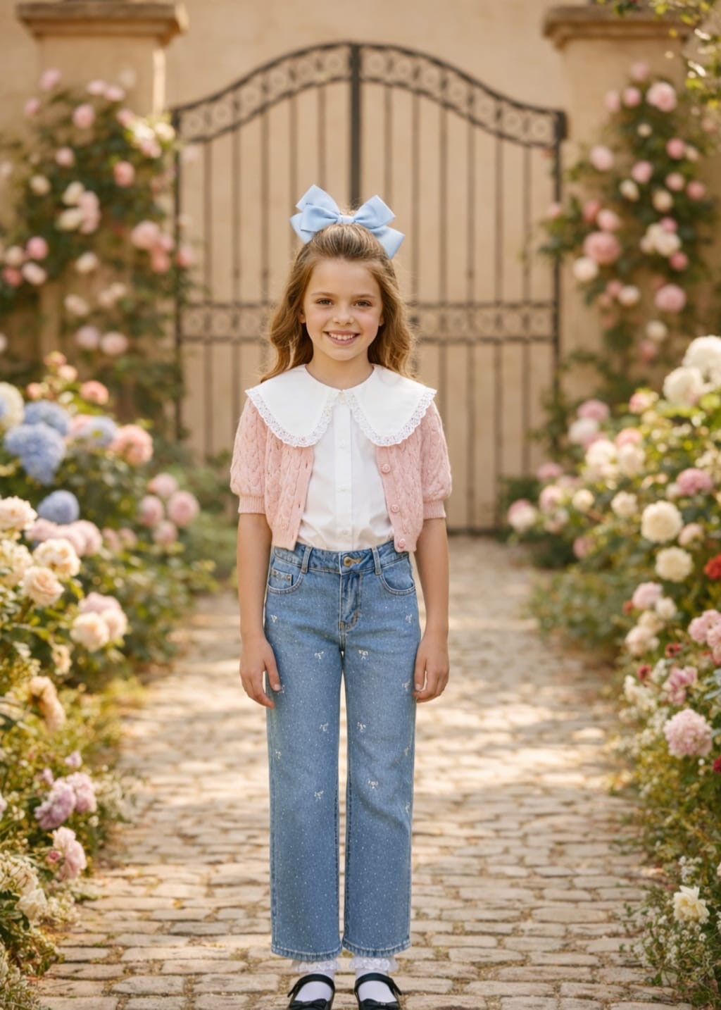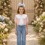 جينز بناتي ribbon bow
